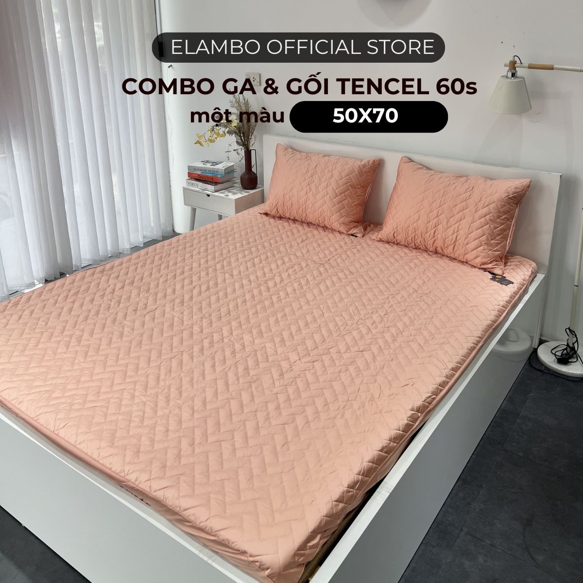 Mỗi combo ga gối ELAMBO Tencel 60S gồm 1 ga giường và 2 vỏ gối nằm 50×70, phù hợp với nhiều kích thước giường và chiều cao nệm khác nhau. Chất liệu Tencel 60S được chọn lọc kỹ càng, đảm bảo độ bền và an toàn cho sức khỏe người sử dụng.